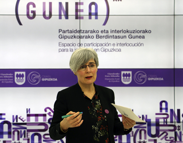 Lurraldeko emakumeekin batera, emakumeen eta gizonezkoen arteko berdintasuna bultzatzeko politikak eta formulak bilatzeko ahaleginetan, Gipuzkoako Foru Aldundiak GUNEA aktibatu du berriro. Kontsulta izaera duen gune berri horren bitartez GUNEA biziberritu nahi da eta emakumeen eta gizonen arteko berdintasunari lotutako gaiei buruzko eztabaida bultzatu, betiere erakundeen, emakumeen elkarteen, feministen sarearen eta esperientzian parte hartu nahi duten emakume guztien lankidetzarekin. Jatorrizko proiektuan sartuta zeuden emakumeen elkarteek, 40 inguru, parte hartuko dute e-GUNEA plataforma birtualean –hurrengo egunetan jarriko da martxan- eta, elkarte horiez gain, berdintasunaren alorrean eztabaidatu eta aurrera egiteko interesa duten emakume guztiak ere parte hartu ahal izango dute.