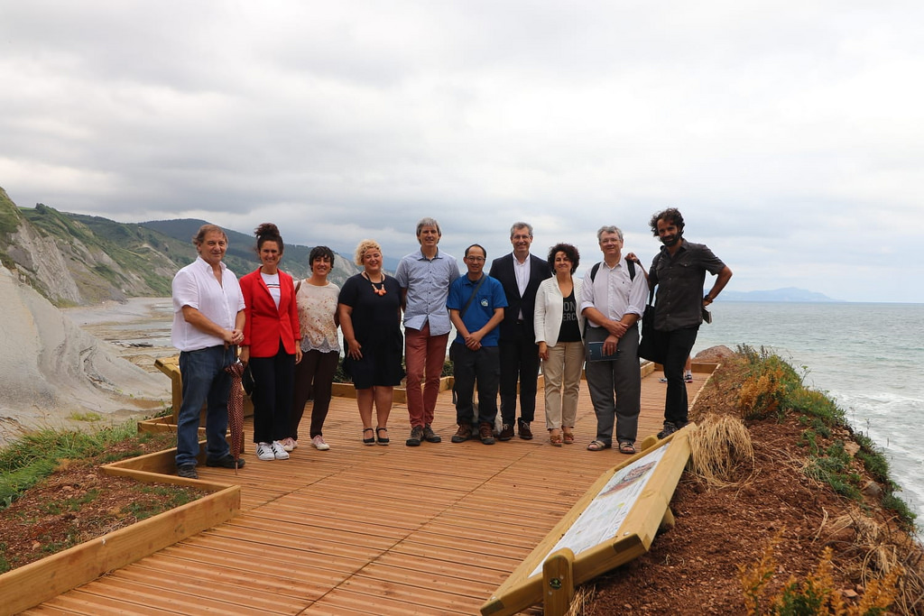 Udalean izandako bileraren ostean, Algorrira hurbildu dira hiru diputatuak, alkateak lagundurik. Bertan, San Telmo eta Algorri bitarteko bidearen zati batzuen erosioa ekiditeko egokitzapen-lanak zertan diren ikusi ahal izan dute. Bide hori da gehien erabiltzen dena eta bisitari gehien jasotzen duen ingurua, eta ondorioz ibilbide sareko zati jakin batzuetan erosio zantzuak antzeman ziren. Arazo horri irteera egoki bat eman nahian, eta bisitarien segurtasuna bermatzeko eta 58 milioi urteko KT geruza babesteko helburuarekin, egokitzapen-lanak jarri ziren abian, intentsitate baxukoak eta eskuzko tresneriarekin eginak. “Kanpoko bisitariez gain, urtean 15.000 ikasle pasatzen dira Algorri Interpretazio Zentrotik, ondoren KT geruza bisitatzeko; babestu beharreko eremua, hortaz”, azpimarratu du alkateak. Lanak ezagutzeaz gain, UNESCO-ko ikuskariekin hitz egiteko aukera ere izan dute, Geoparkeak dituen erronken inguruan jarduteko.