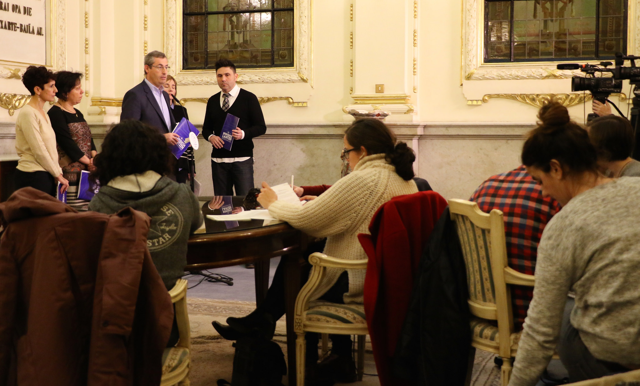 El diputado general y la directora foral de Convivencia y Derechos Humanos, Maribel Vaquero, se han reunido en el palacio foral con alcaldes de municipios que recientemente se han sumado a la dinámica o lo harán este mismo año. En la reunión han participado Elena Lete, alcaldesa de Bergara; Mikel Serrano, alcalde de Zumarraga; y Zorione Etxezarraga, alcaldesa de Astigarraga, que han recibido de primera mano detalles sobre el programa foral. Luego, ambas partes han comparecido ante los medios para informar de lo tratado y para profundizar en los planes y experiencias que estos municipios están llevando o prevén llevar a cabo.