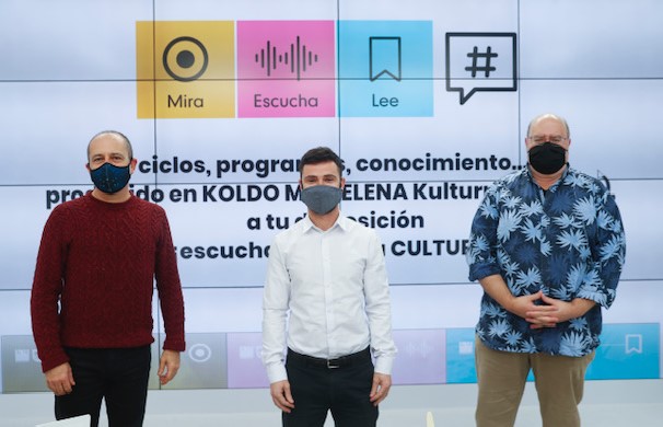 Esta mañana el diputado foral de Cultura Harkaitz Millan y el director del KMK Patxi Presa han presentado el proyecto #KMK Elkarrizketak. Se trata de un nuevo canal digital donde se podrá acceder a diferentes contenidos realizados en el propio centro.