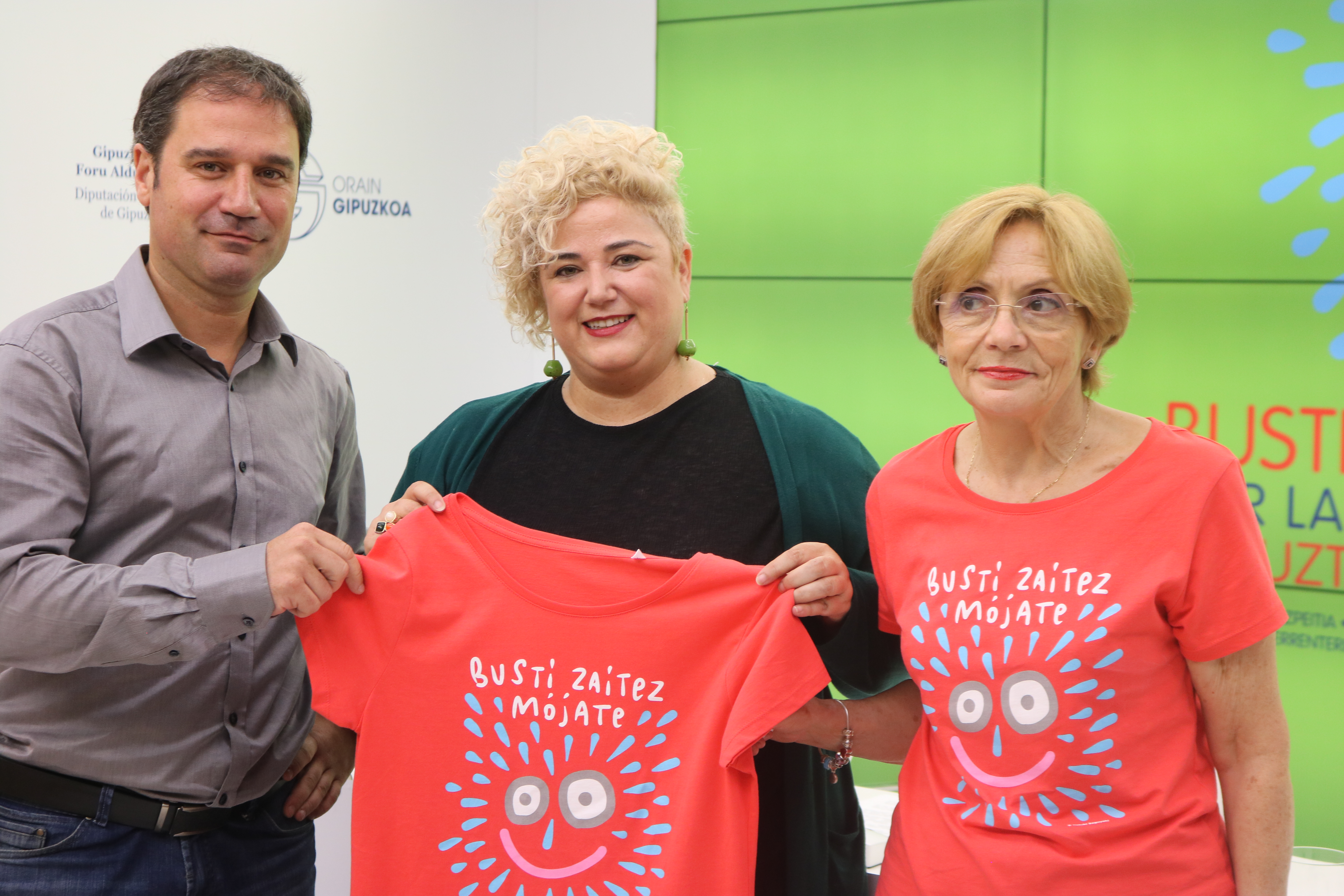 Maite Peña y Ademgi han presentado la XXI. Edición de la campaña “Busti zaitez – Mójate”, que tendrá lugar este domingo en 11 localidades guipuzcoanas