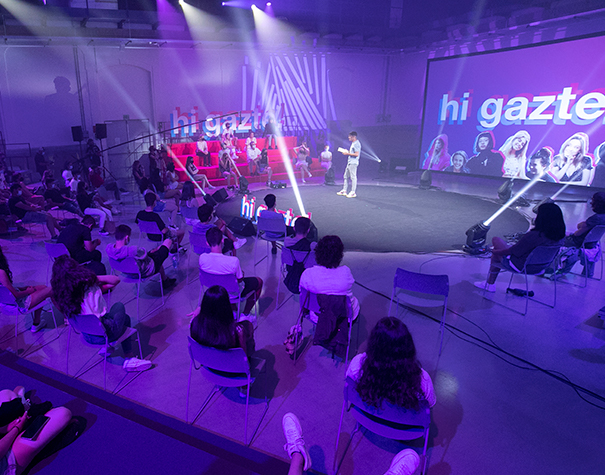 La actual del proyecto Hi Gazte!, puesto en marcha por la Diputación Foral de Gipuzkoa, ha sido "muy exitosa", ya que ha animado a 250 jóvenes del territorio a crear contenidos audiovisuales en euskera y compartirlos a través de las redes sociales. Esta mañana se ha celebrado en Tabakalera la última sesión de este innovador programa en el que, además de premiar los trabajos más originales de 2021, los y las participantes han podido disfrutar con la actuación en directo de destacados jóvenes artistas del momento.