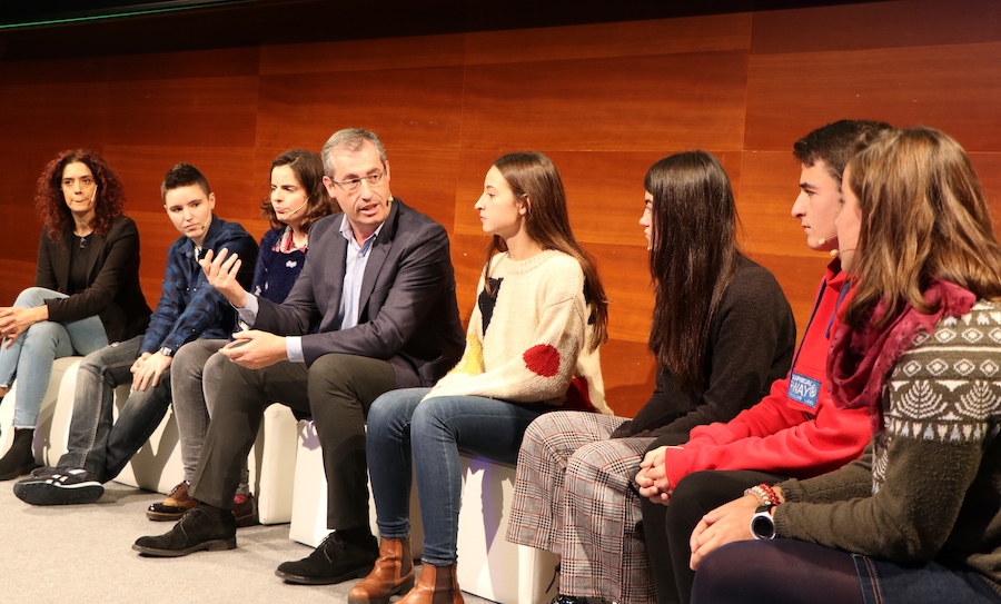 El acto de entrega de esta mañana ha servido como reflexión global de lo trabajado en las aulas para lo que se han llevado a cabo dos coloquios en los han participado los responsables forales. De esta manera, el diputado general ha realizado un llamamiento a los alumnos y alumnas congregados en el Kursaal para que hagan suyo "el compromiso activo por los derechos y la igualdad en una Gipuzkoa diversa, solidaria y desarrollada; dando así pasos para construir un futuro con más igualdad, oportunidades y cohesión social para todos y todas". Olano ha hecho especial hincapié en la educación y la involucración personal de las y los jóvenes. Dirigiéndose a estos como "los líderes del futuro", el diputado general ha explicado que ellos y ellas serán "los responsables de construir un país donde todos y todas tengamos los mismos derechos y las mismas responsabilidades, donde el bienestar se asiente en la cohesión social que garantiza la igualdad de oportunidades a toda la ciudadanía", y no, ha puntualizado, "un bienestar para unos construido sobre la discriminación de otros".