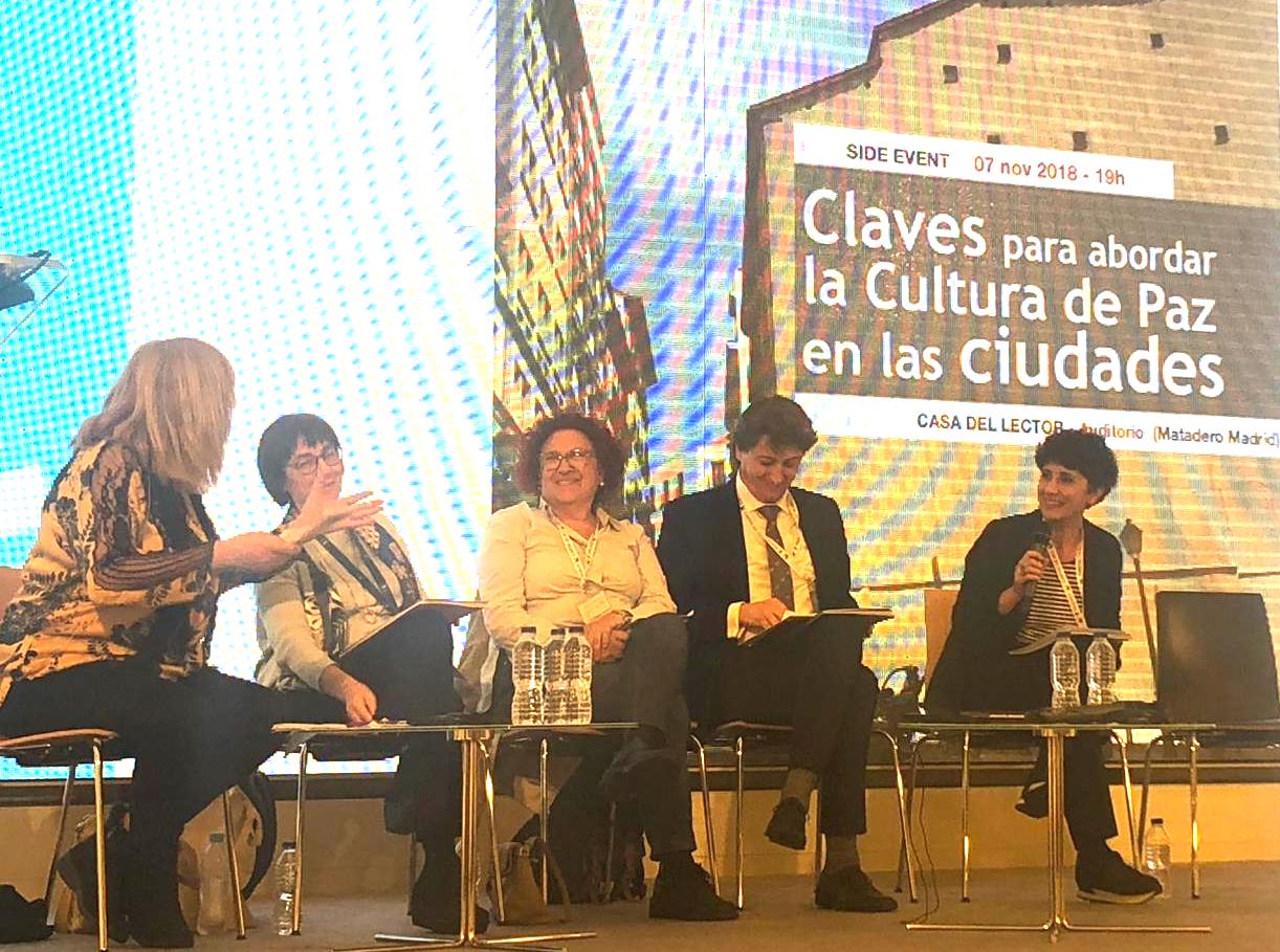 En la mesa se compartieron diferentes Experiencias locales transformadoras para la paz, donde la Directora compartió espacio junto con Josep Mayoral, Alcalde de Granollers y Vicepresidente de Alcaldes por la Paz, Carlos Martínez Mínguez, Alcalde de Soria, y Mónica Fein, intendenta (alcaldesa) de Rosario en Argentina, entre otros.