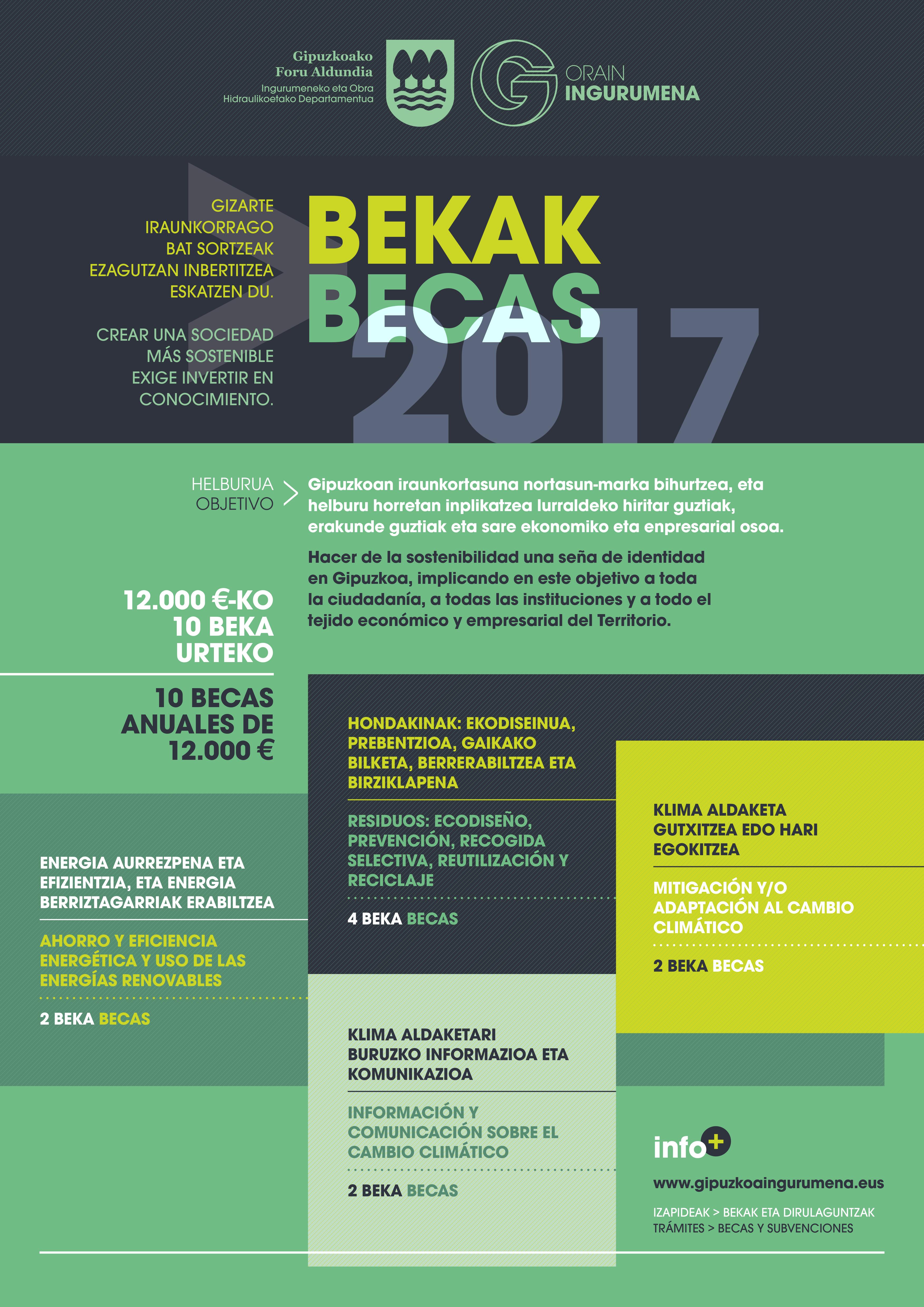 Habiendo tomado conciencia de ello, la Dirección de Medio Ambiente de la Diputación Foral de Gipuzkoa inició hace dos años una nueva línea de trabajo que trata de impulsar la investigación, la innovación y la divulgación en distintas áreas del medio ambiente y la sostenibilidad, a través de la convocatoria anual de becas destinadas a financiar proyectos propuestos por jóvenes investigadores y divulgadores que trabajen en dichas áreas.