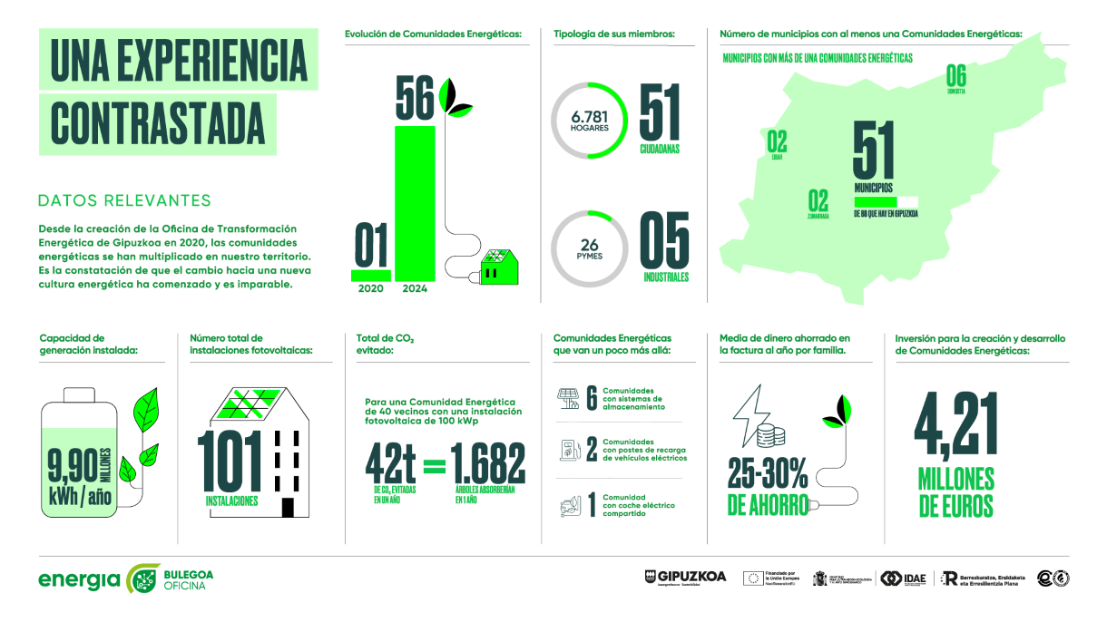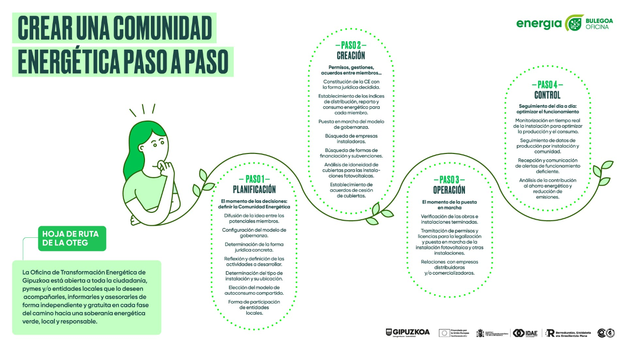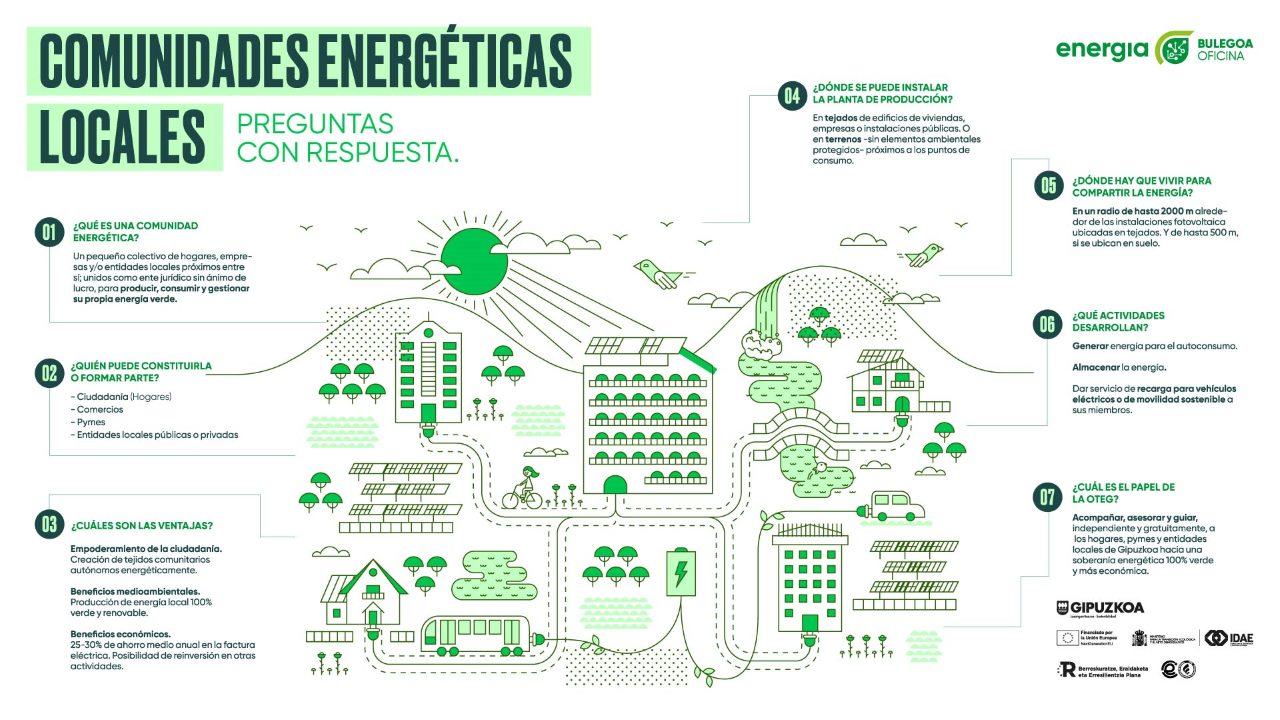 Se trata de un servicio público que el Departamento de Sostenibilidad de la Diputación Foral ofrece a los hogares, pymes y entidades locales de cada municipio de Gipuzkoa para acompañarles, asesorarles y guiarles en su camino hacia la soberanía energética, impulsando la creación de comunidades energéticas locales: una forma de producción y consumo de energía 100% verde, sostenible, de kilómetro 0 y más económica.