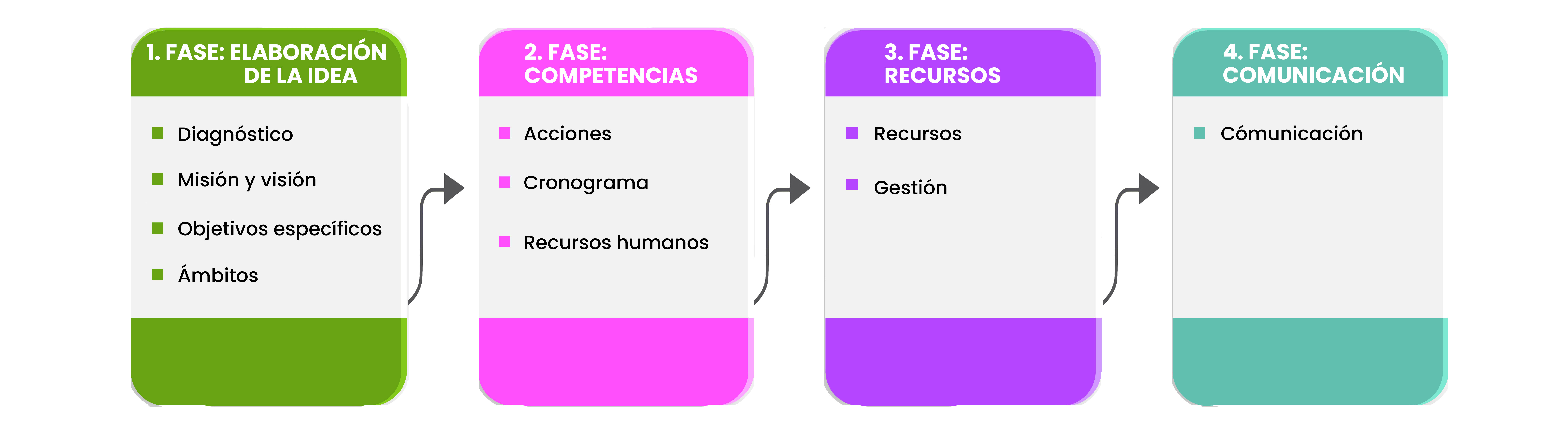 Si quieres desarrollar esa idea que te ronda por la cabeza, ponte en contacto con el centro. Te ayudaremos a convertir esa idea en proyecto, sólo tienes que trabajar en estas 4 fases: