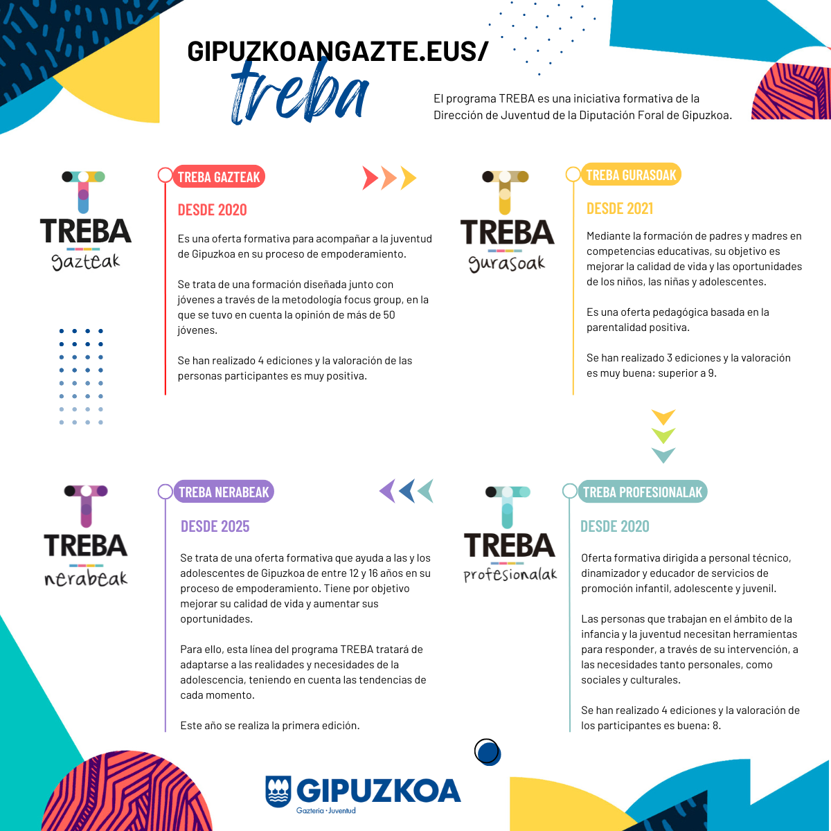 El Departamento de Juventud de la Diputación Foral de Gipuzkoa presenta la programación de otoño de TREBA, un programa de formación y acompañamiento que busca promover el bienestar, la formación y el empoderamiento de adolescentes, jóvenes y familias del territorio.