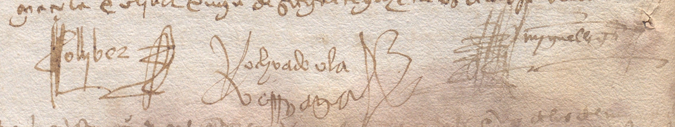 'Sennor lic(enciad)o Ro(drigo) Vela Nunnes de A' prueba de escritura en pag. 51r. (Corregidor en Gipuzkoa en 1499-1505 y 1512-1514) |