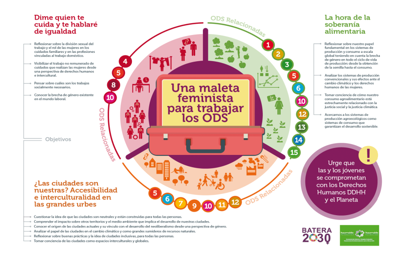 Una maleta feminista para trabajar los ODS” es un recurso metodológico y pedagógico para analizar, debatir y pensar los Objetivos de Desarrollo Sostenible tanto en el ámbito de la educación formal como en el de la educación no formal
