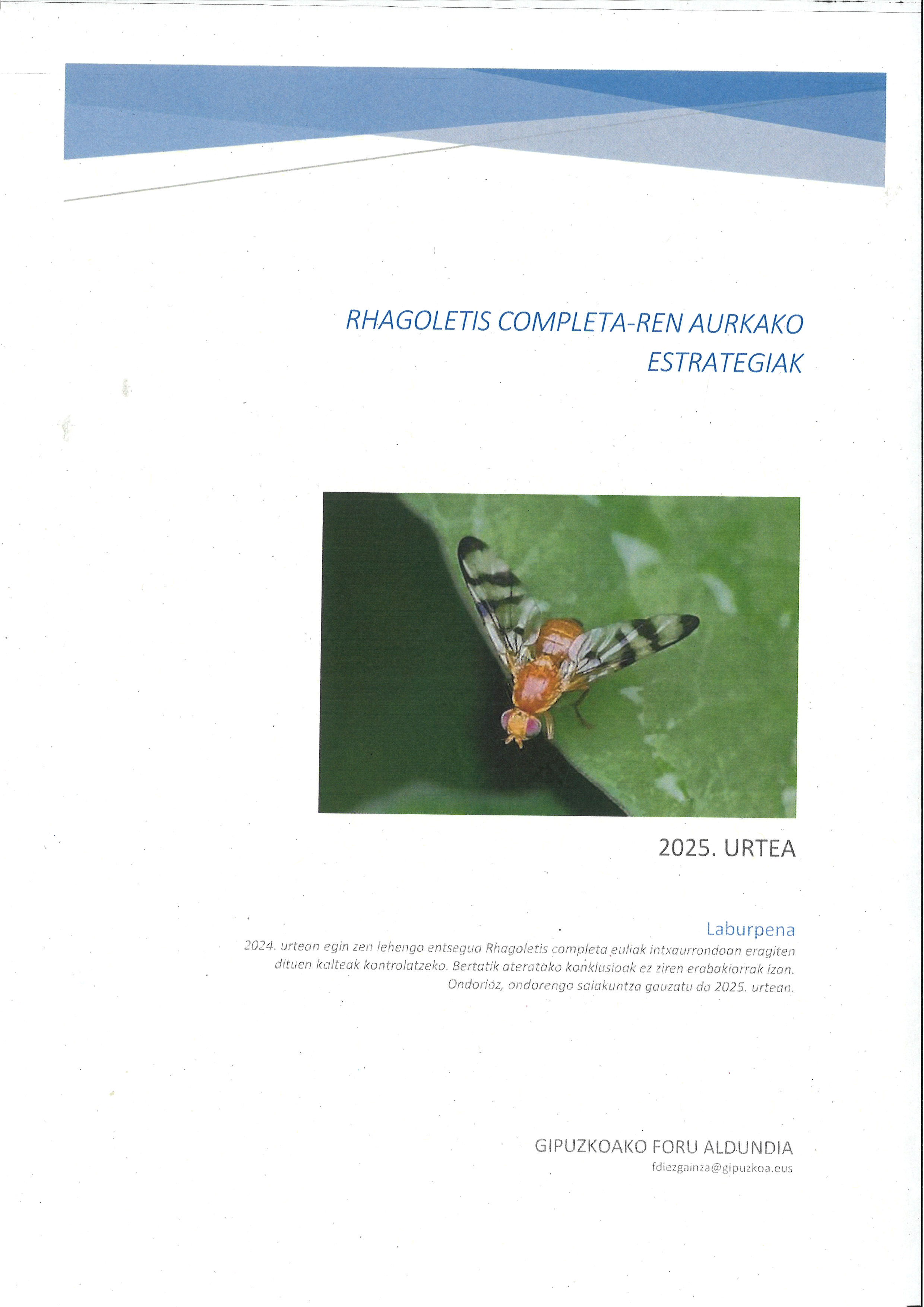 el 2024 la Diputación de Gipuzkoa realizó un ensayo para comprobar posibles estrategias contra Rhagoletis completa. Los resultados no fueron concluyentes y se realizó un nuevo ensayo en 2025.