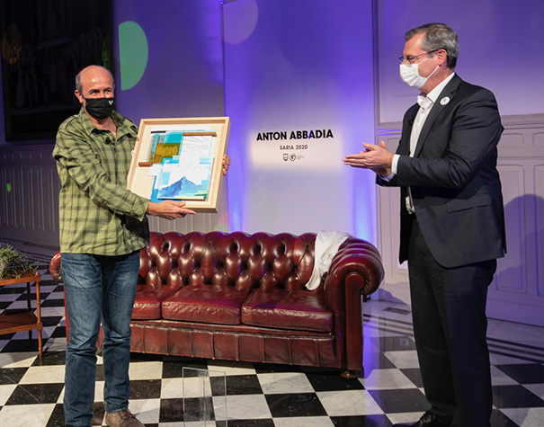 Ezohikoa izan da 2020ko Abbadia Saria banatzeko ekitaldia, urtero bezala Euskararen Nazioarteko Egunaren atarian Gipuzkoako Foru Aldundiak antolatua. Osasun irizpideak direla medio, publikorik gabe egin dute, baina streaming bidez emititu dute, herritarrentzat eta euskalgintzako kideentzat ikusgarri. Jauregi eta Olanoz gain, hitza hartu dute Kike Amonarrizek, Topaguneko lehendakariak eta 2015eko Abbadia Sariak, eta Estibalitz Alkortak, Eusko Jaurlaritzako Euskara Sustatzeko zuzendariak.