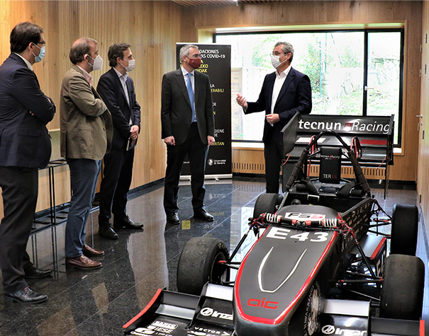 Lurraldeko unibertsitateekin egiten ari den lan-bileren testuinguruan, Markel Olano diputatu nagusiak Tecnun Nafarroako Unibertsitateko Ingeniaritza Eskolaren instalazioak bisitatu ditu gaur goizean. Ekonomia Sustapeneko, Turismoko eta Landa Inguruneko foru diputatu Jabier Larrañagarekin batera, Raul Anton Eskolako zuzendariarekin elkartu da eta bi erakundeek dituzten lankidetza-ildoen balantzea egin dute. Besteak beste, mugikortasun berriari lotutako industria sustatzeko lurraldea egiten ari den ahaleginean Tecnunek egin dezakeen ekarpena aztertu dute, bai eta Etorkizuna Eraikiz programan duen parte hartzea ere, pandemiaren aurrean Gipuzkoako eta Euskadiko gizarte-, ekonomia- eta ingurumen-erronkei aurre egiteko.