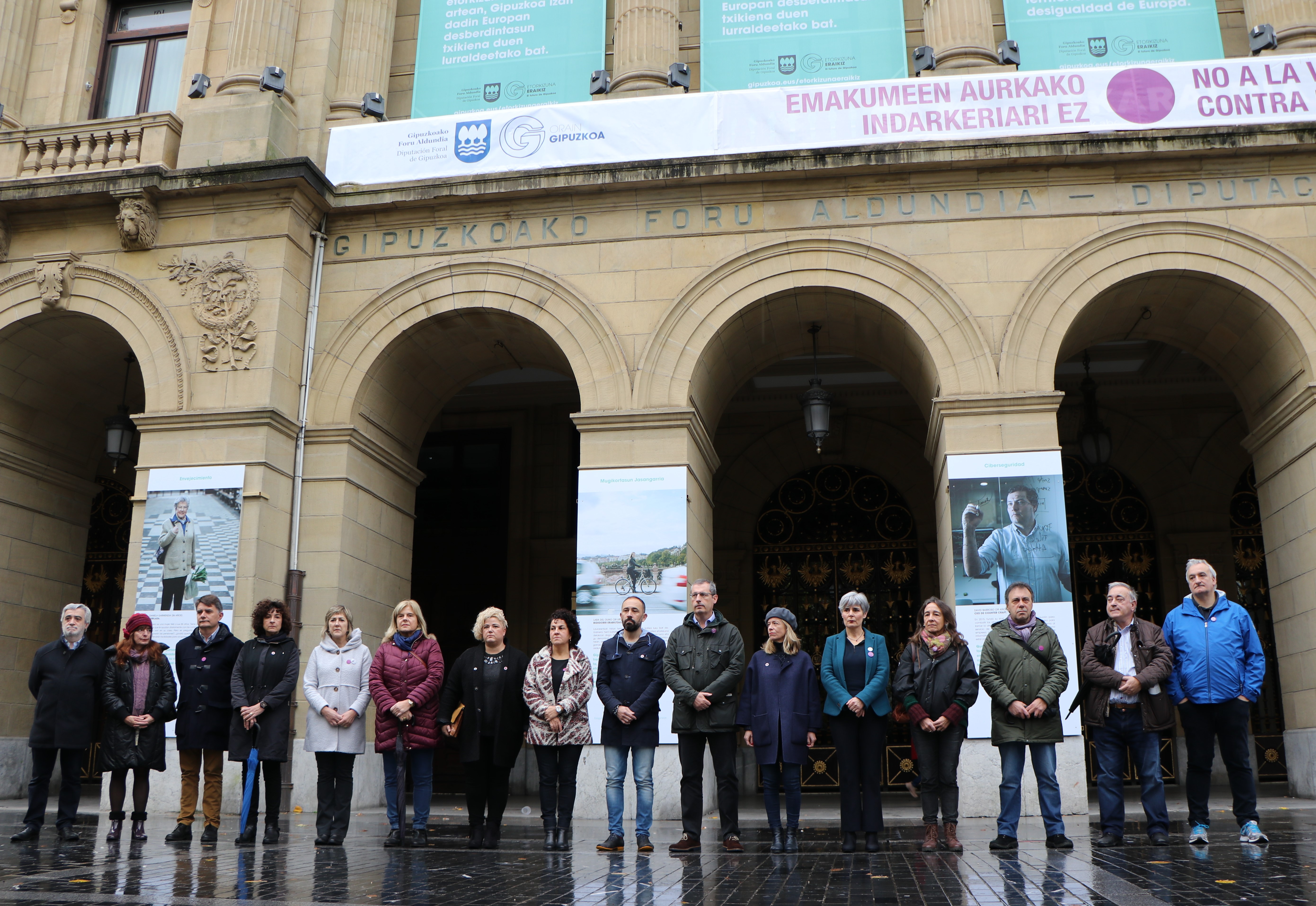 Emakumeen kontrako indarkeria desagerrarazteko Nazioarteko Egunaren harira, Markel Olano diputatu nagusia buru izan dela, Gipuzkoako erakundeetako ordezkariek elkarretaratzea egin dute dute gaur Donostian foru jauregiaren aurrean. Beste behin ere, emakumeen aurkako indarkeriaren kontra batu eta konpromiso indibidual eta kolektiboa agertu dute bertaratutakoek.
