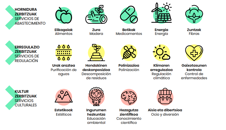 Zerbitzu ekosistemikoak pertsonek eta gizarteak ekosistemen funtzionamendutik lortzen dituzten onuren multzoa dira. Adibidez, ur garbia ekoiztea, lurzorua sortzea, basoek klima erregulatzea, polinizazioa, biodibertsitatea kontserbatzea, etab.