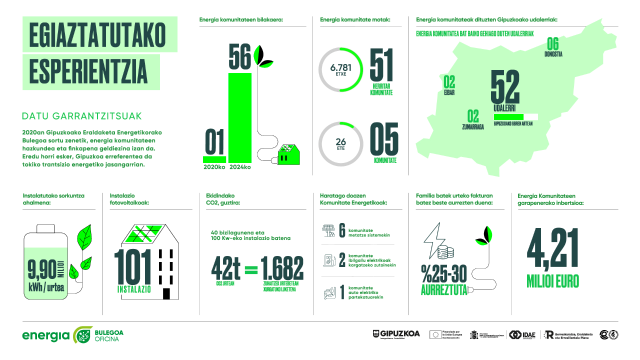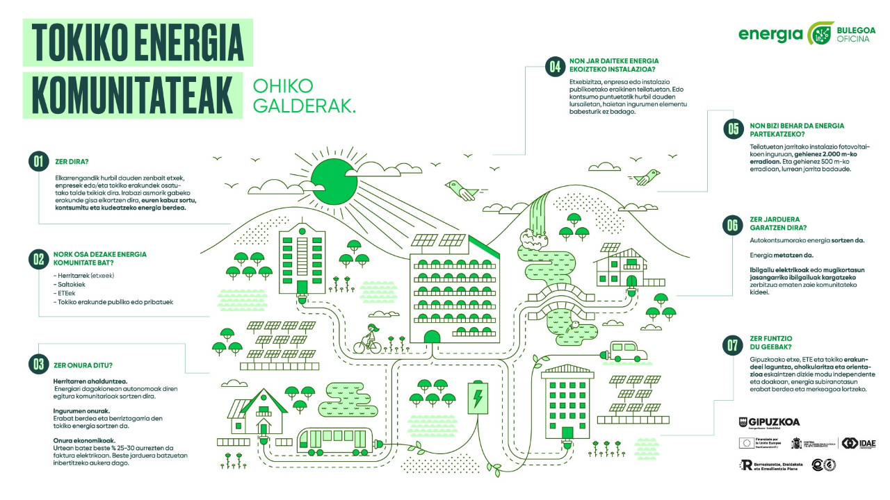 Gipuzkoako Foru Aldundiaren Jasangarritasun Departamentuak Gipuzkoako udalerri bakoitzeko etxe, enpresa txiki eta ertain (ETE) nahiz tokiko erakundeei eskaintzen dien zerbitzu publikoa da. Energia burujabetza lortzeko bidean laguntza, aholkularitza eta gidaritza ematen du eta 100% berdea, iraunkorra, 0 kilometrokoa eta merkeagoa den energia sortu eta kontsumitzen duten tokiko energia komunitateak sustatzen ditu