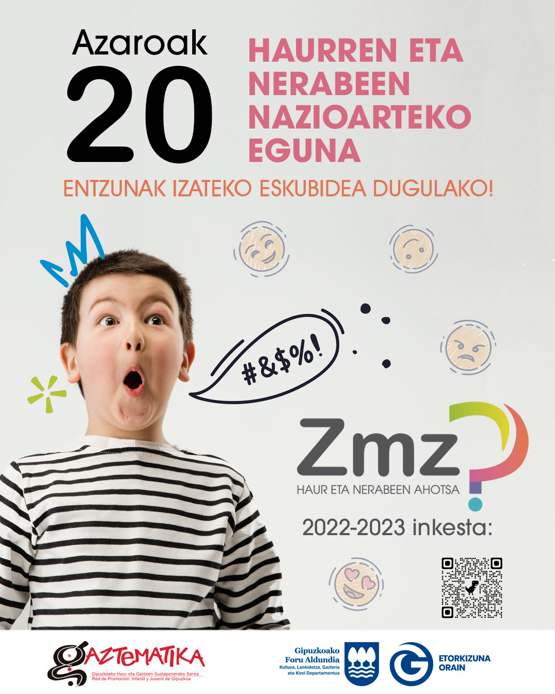 Haurren Eskubideen Nazioarteko Eguna eta ZMZ entzute-prozesua baliatuz, Gazteria Zuzendaritzak kanpaina bat martxan jarri du haurrei eta nerabeei ahotsa ematearen eta entzutearen garrantziaz jabetzeko. Haur eta nerabe guztiek adierazpen-askatasuna garatzeko eta entzunak izateko eskubidea dute.