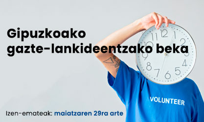 Gipuzkoako Foru Aldundiko Kultura, Lankidetza, Gazteria eta Kirol Departamentuak gazte gipuzkoarrei zuzendutako lankidetza-beken deialdi berria zabaldu du. Dirulaguntza horien eskaera egiteko epea maiatzaren 29an amaituko da eta Internet bidez aurkeztea hobetsiko da.