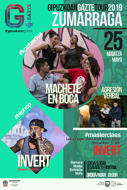 Atzealdea Gipuzkoan Gazte Tour Zumarraga: Machete en boca, Agresión verbal eta Invert taldeak kartelean; azken honek rap masterclass bat eskainiko du