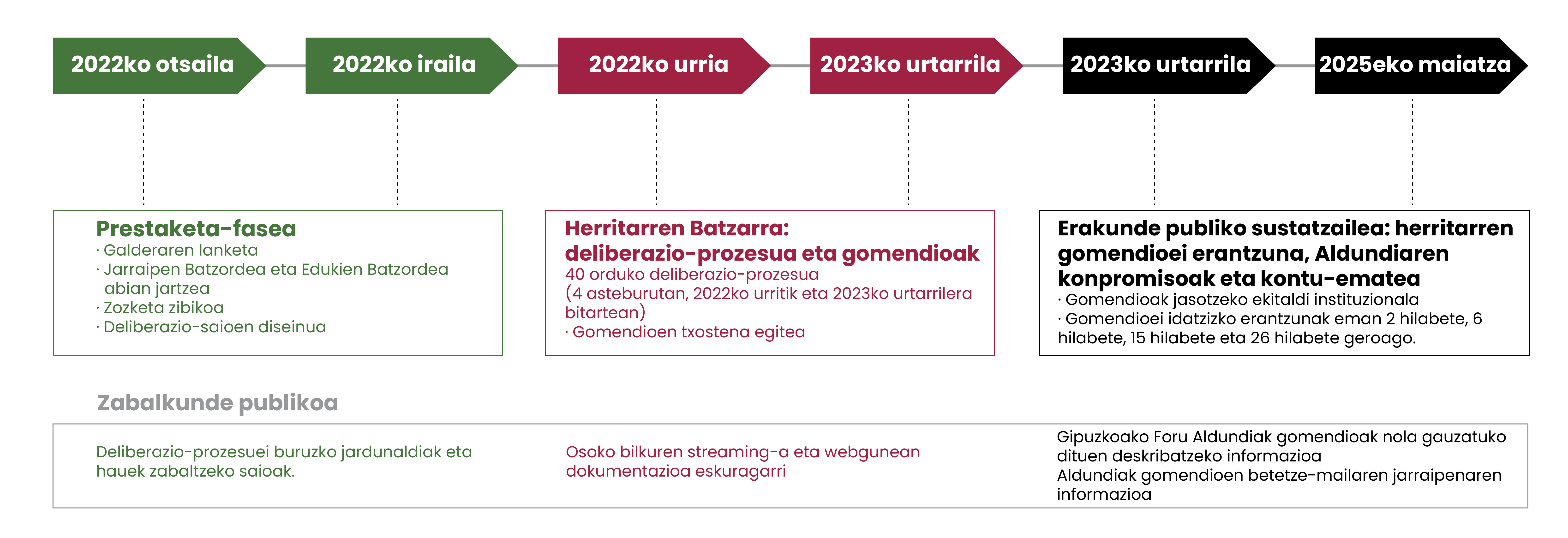 Eragina/ inpaktua: Gipuzkoako Foru Aldundiak batzarrean parte hartuko duten herritarrek egindako gomendioei erantzutera eta horiei jarraipena emateko konpromisoa hartzen du.