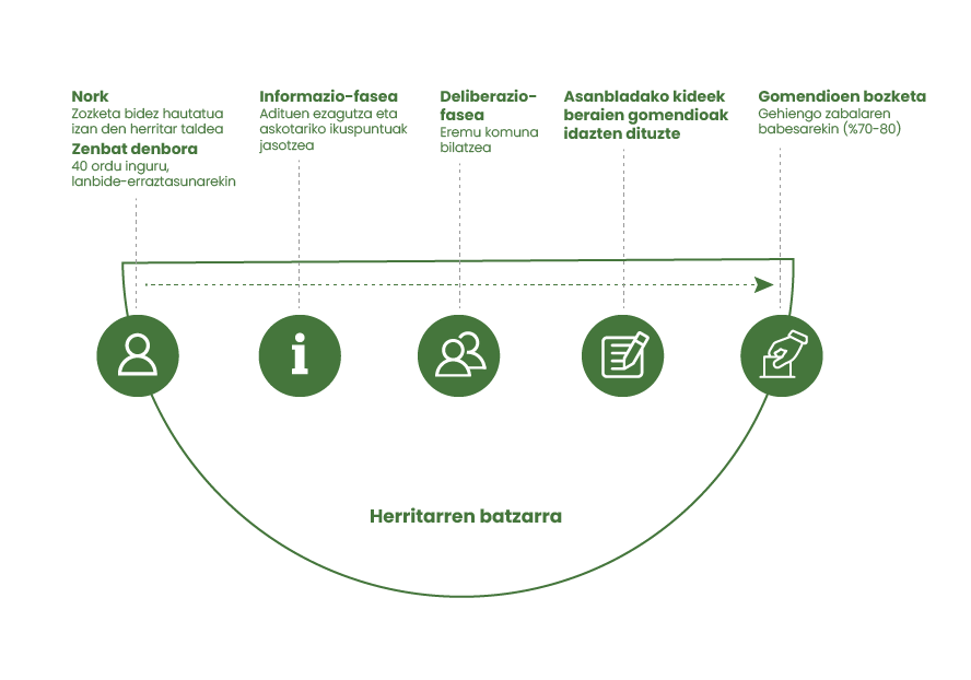 Orokorrean Herritarren Batzarretan honako urratsak jarraitzen dira: