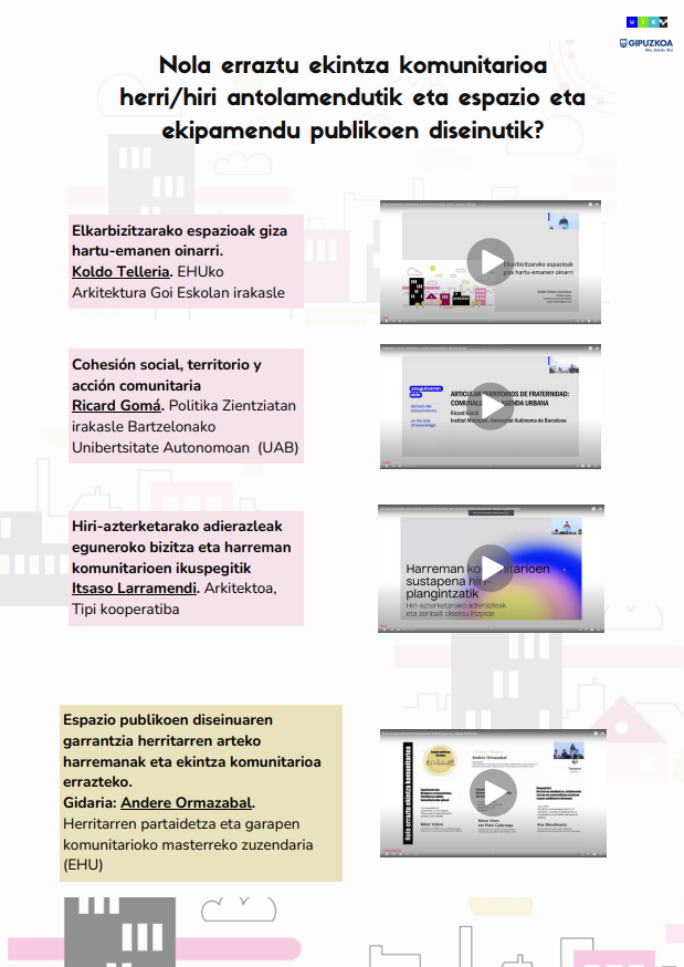 Nola erraztu ekintza komunitarioa herri/hiri antolamendutik eta espazio eta ekipamendu publikoen diseinutik?