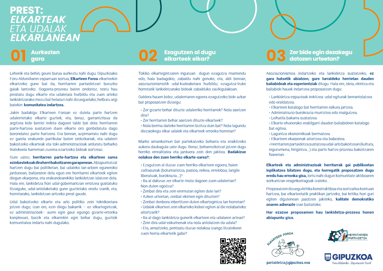 Horren bidez, elkarte eta eragileen arteko lankidetza eta elkartrukea aztertu eta esperimentatu nahi da, bai eta elkarte eta eragile horien eta Foru Aldundiaren artekoa ere; horretarako bakoitzaren rolak, eskumenak eta berezitasunak aitortu nahi dira eta, aldi berean, harreman publiko-sozialerako modu berriak aztertu, herritarren partaidetza indartzen laguntzeko.