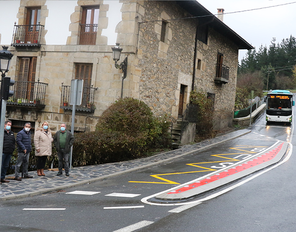 Egokitzen lanen baitan, autobusa gelditzeko badia bat egokitu da. Paso alternoa tartean gelditu denez, autobus gidariari semaforoa ze norabidetan zabalik dagoen jakiteko, semaforo gehigarri bat jarri zaio. Gunea argiztatu ere egin da eta udalak erabiltzaileentzako markesina jarri du.