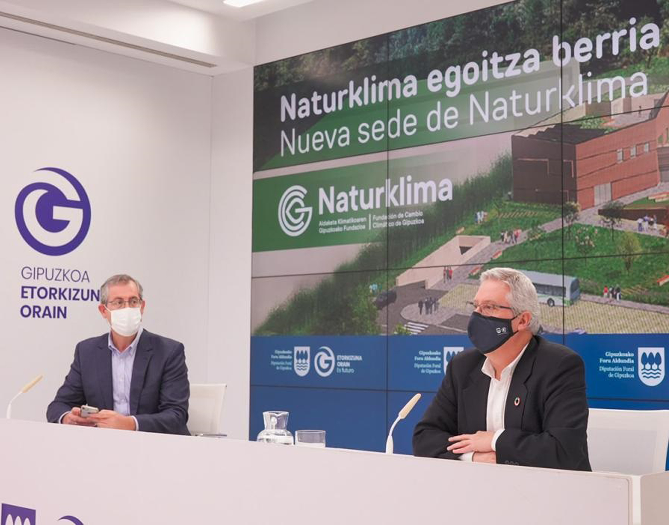 Markel Olano Gipuzkoako diputatu nagusia eta Jose Ignacio Asensiok, Gipuzkoako Foru Aldundiko Ingurumen eta Obra Hidraulikoetako diputatu eta Naturklimako lehendakariak, Naturklimaren egoitza berria eraikitzeko lizitazioaren xehetasuna ezagutzera eman ditu gaur. Naturklima, Ingurumen Zuzendaritzari atxikitako Gipuzkoako Klima Aldaketaren foru-fundazioa, 2019ko otsailean hasi zen lanean, behin-behinean Miramongo parke teknologikoan. Behin betiko egoitza berria Eskuzaitzetako industrialdeko V. partzelan egongo da. Industrialde horretan Naturklima kokatzea funtsezkoa da, Eskuzaitzeta baita inguruko enpresa-poligonorik handiena, eta, gainera, industria-lurzoru erabilgarriak ditu Naturklimako egoitza berriaren ondoan. José Ignacio Asensio Naturklimako lehendakariak adierazi duenez, “Naturklima industria eta enpresa berde berriak ezartzearen sustatzailea izan daiteke, eta Eskuzaitzetan ekonomia zirkularrean, energia-trantsizioan eta klima-aldaketan espezializatutako enpresen eta industrien industriagune berdea sortzen lagundu”.